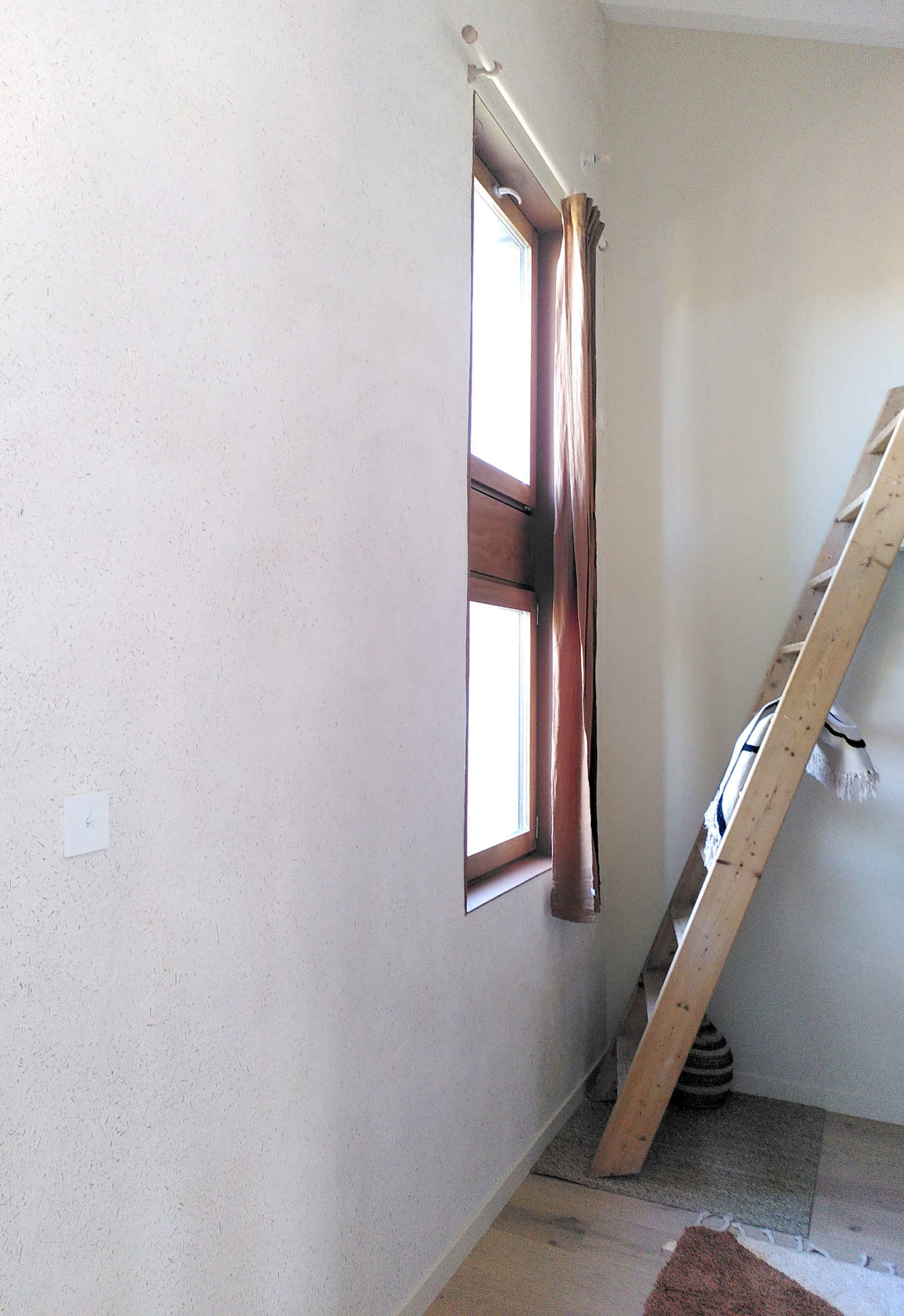 enduit terre blanche – chanvre Rénovation d’une maison bioclimatique datant d’une vingtaine d’années, avec Aziliz Gonnet – Deux Mains des Murs, à Ploeren. Enduit terre kaolin et chanvre.