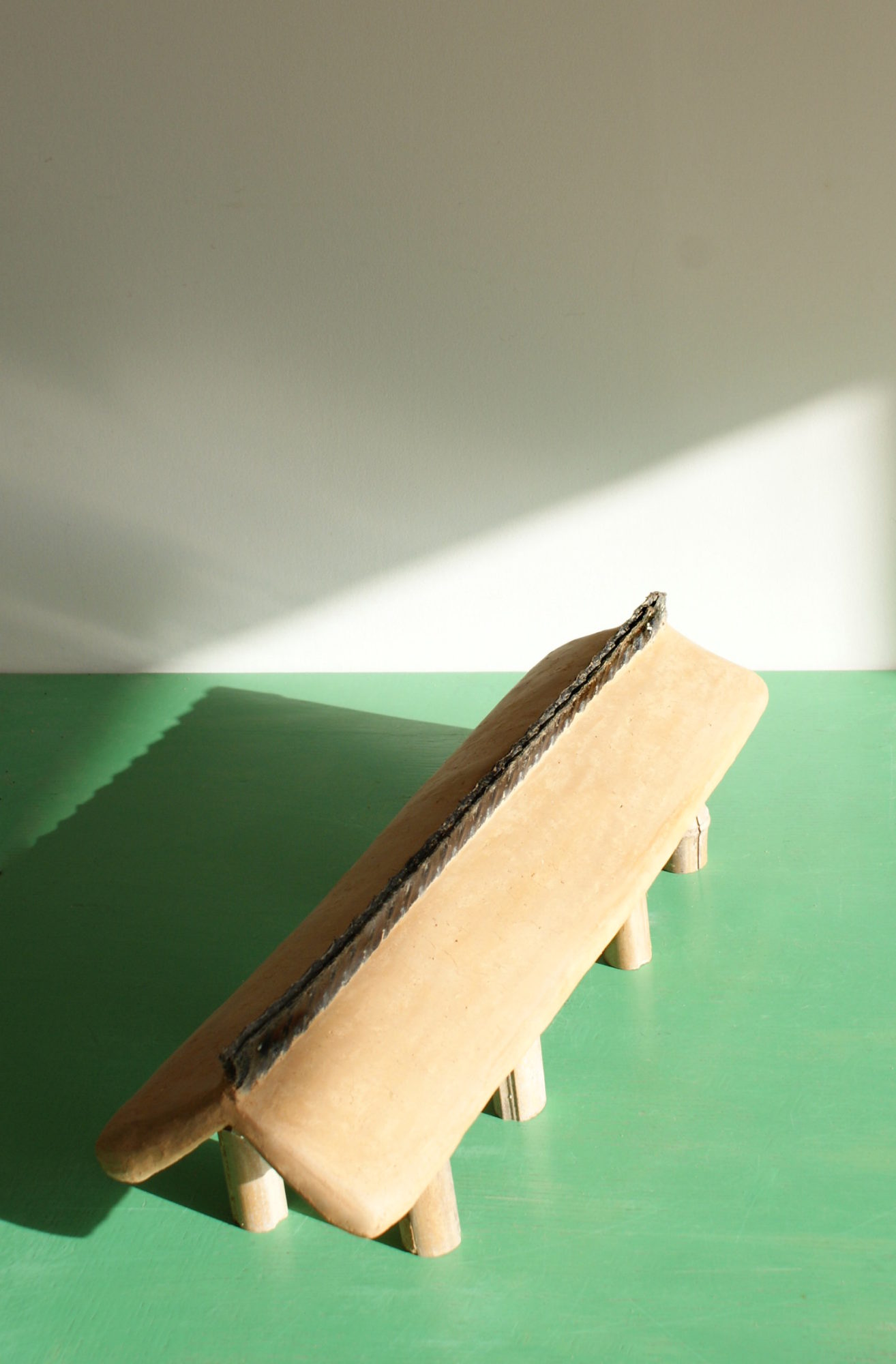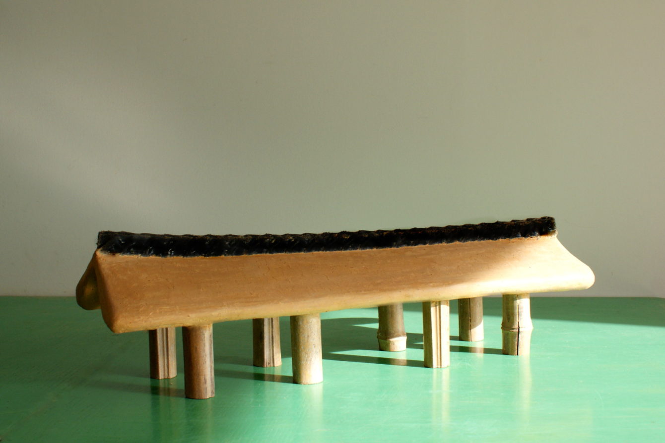 lampe en terre crue, bambous & poche d’huîtres