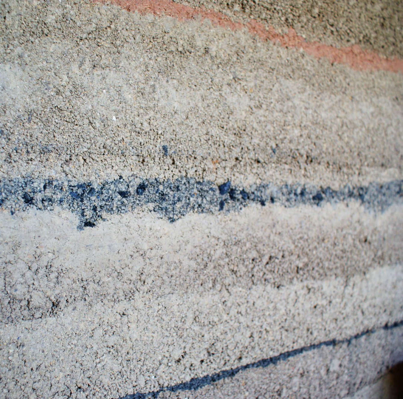 Dans cette maison bioclimatique sur pilotis, la terre excavée lors des fondations a été judicieusement mise à l’abri pour la réalisation d’enduits de 5-6 cm d’épaisseur pour apporter de la masse et réguler la température. Réalisation de 5 murs avec des techniques d’accroches, et des finitions différentes à Crac’h.