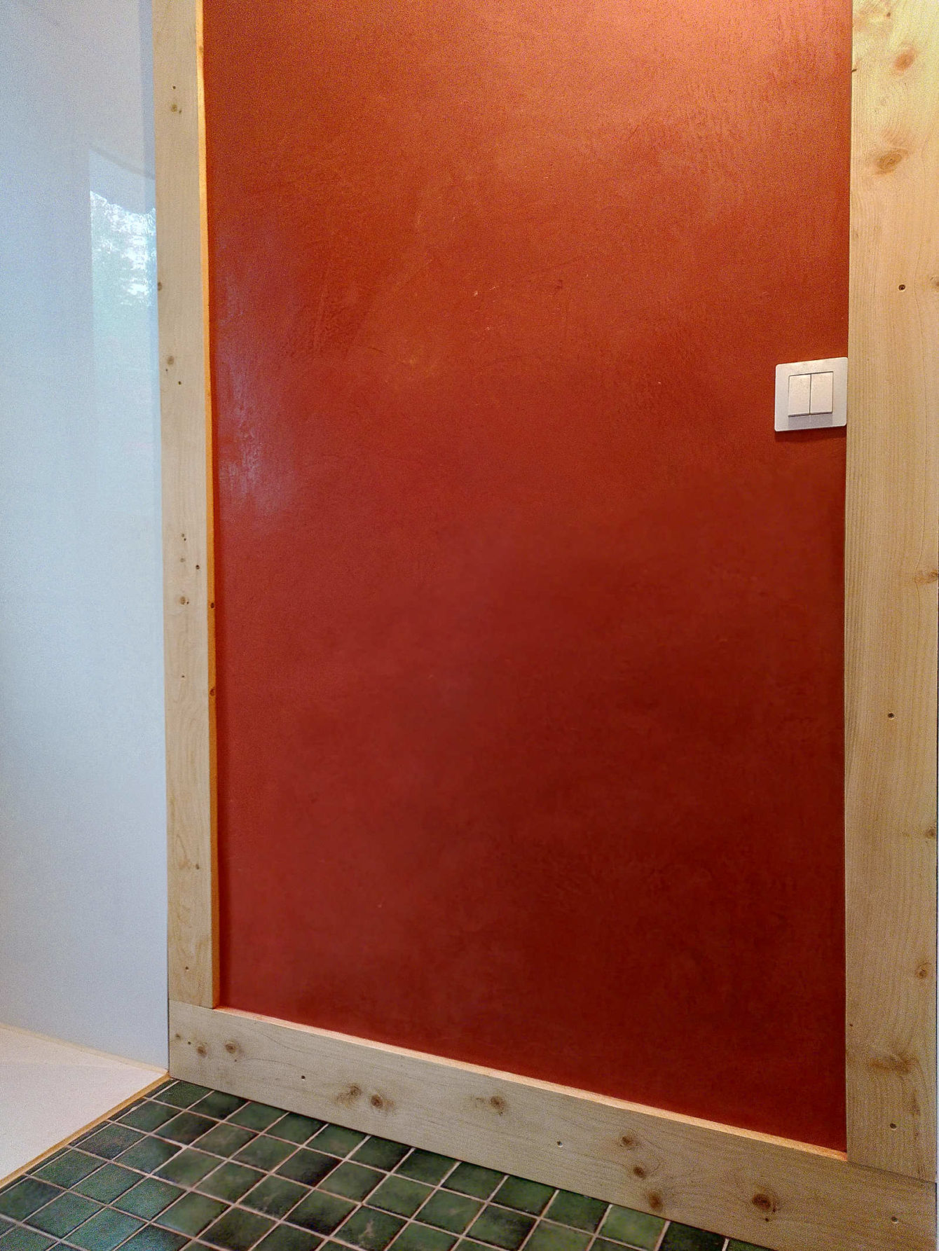 Stuc de terre Stuc de terre dans une salle de bain à La Trinité-sur-Mer. Le stuc est un enduit très fin, légèrement satiné, plein de nuances.